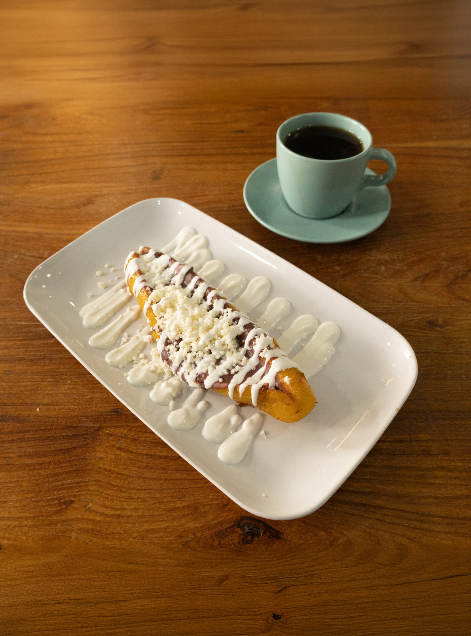 Plátano frito entero, frijoles queso y mantequilla.